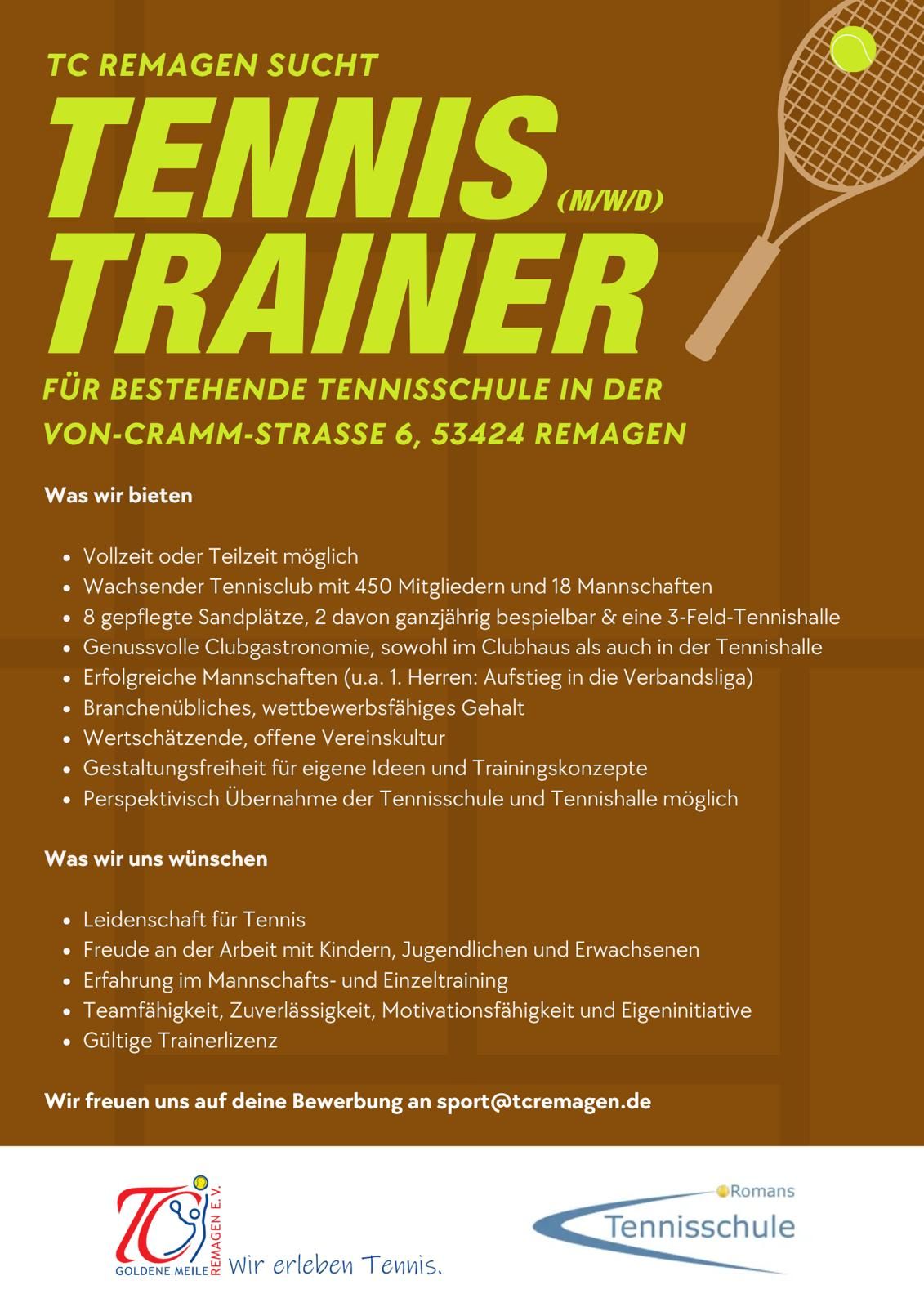 Mit meinem Trainer-Team ist mir daran gelegen, Ihnen - bei Bedarf ganzjährig - ein entsprechend Ihren Interessen und Fähigkeiten abwechslungsreiches Trainingsprogramm zu schnüren mit dem Ziel, Ihre spielerischen Fertigkeiten zu verbessern. Bei uns dürfen Sie sich nach Herzenslust austoben. Wir alle von Romans Tennisschule möchten, dass Sie sich bei uns wohlfühlen - "Tennis trainieren" kann so schön sein! Und all' dies in Romans Tennisschule in Remagen zu einem attraktiven Preis!